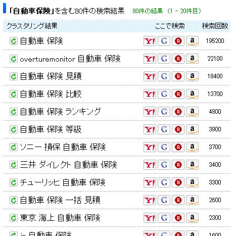 「自動車保険」で検索した例です。